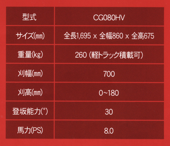 キャニコム製ラジコン草刈機「アラサー傾子(CG080HV)」です。