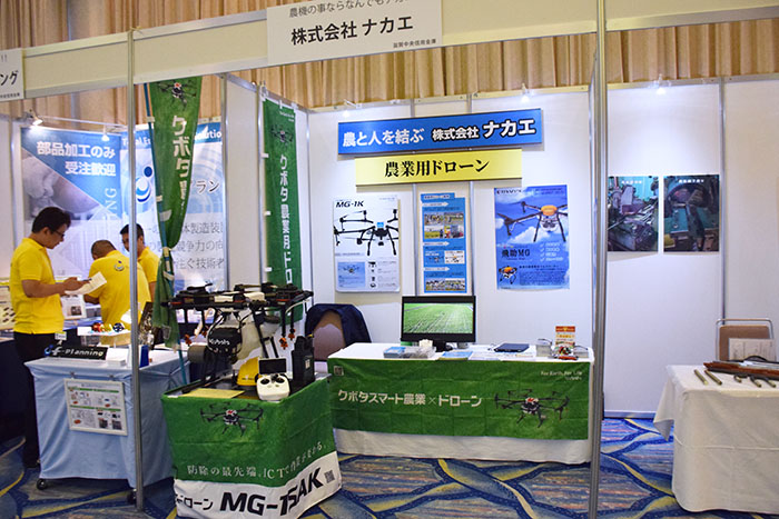 ここ何年も出展していますが、今回のブースでは、本格的に事業展開を始めた農業用ドローン業務を紹介させていただきました。ドローン自体の注目もあり、他にドローンを出展されているブースもありました。当方としては、散布業務を中心に、機体の購入や散布業務に関して社長と散布部門の担当者がお話しさせていただきました。