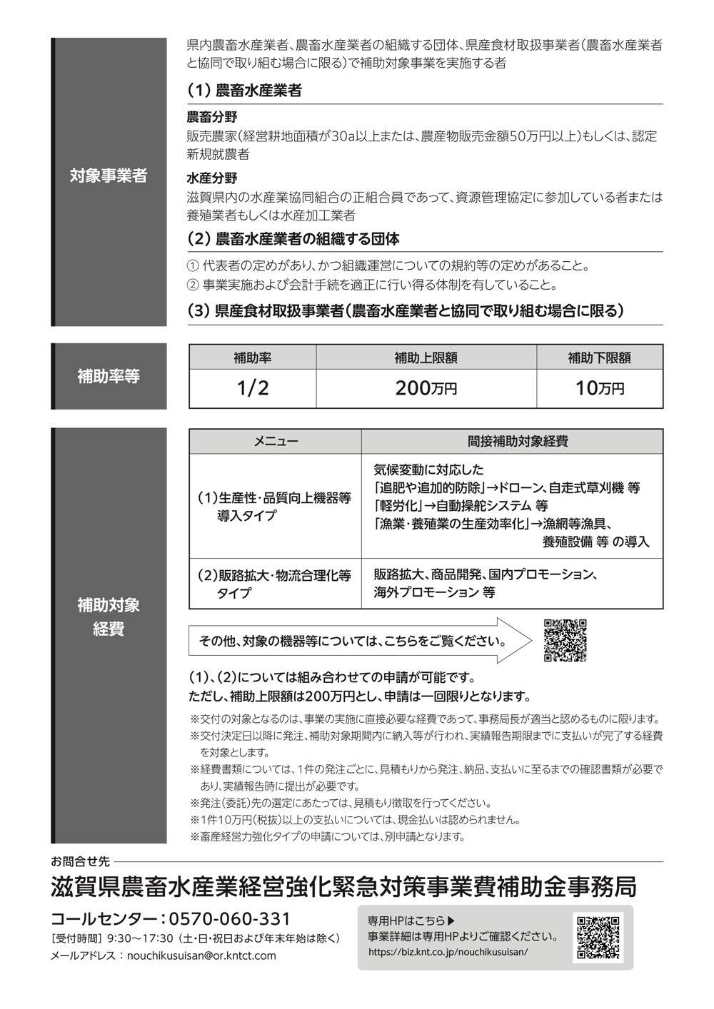 「滋賀県農畜水産業経営強化緊急対策事業費補助金」の詳細ページはこちら
